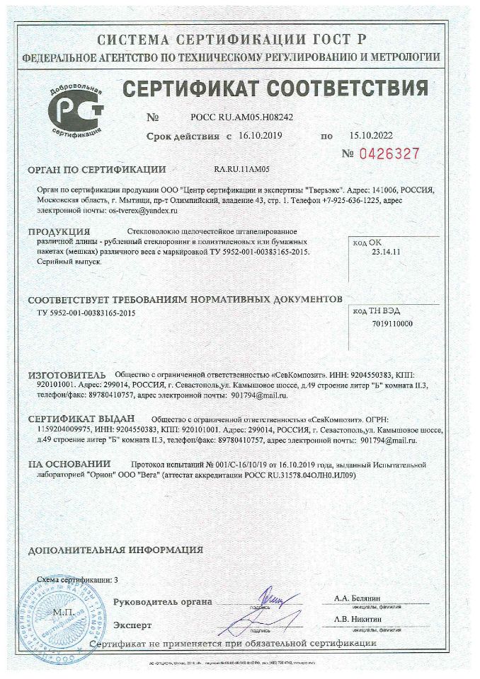 Наша Стеклофибра изготавливается из высококачественного стеклоровинга всемирно известной торговой марки "ADVANTEX", производства лидера в сфере композитных материалов компании OWENS CORNING (США).